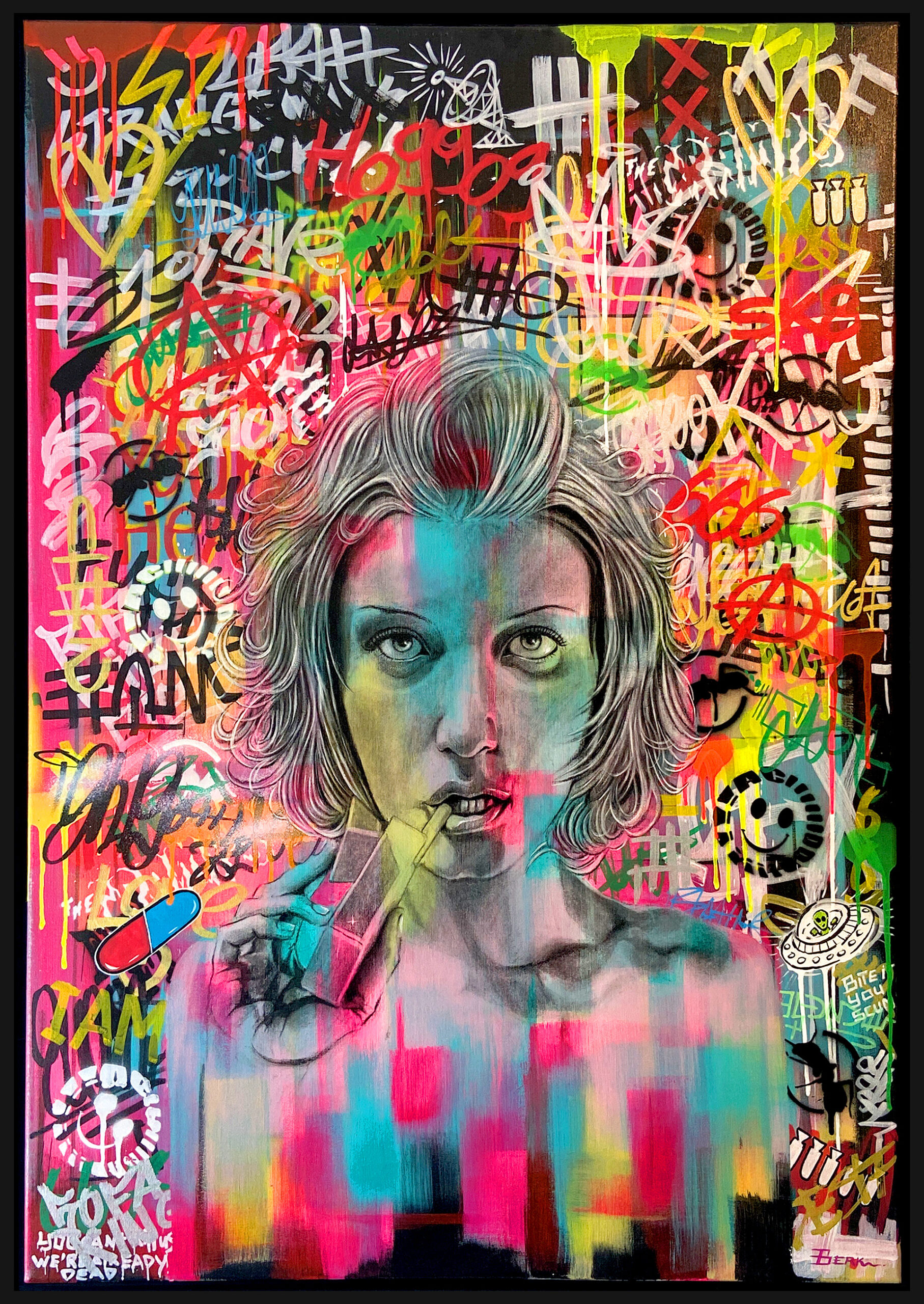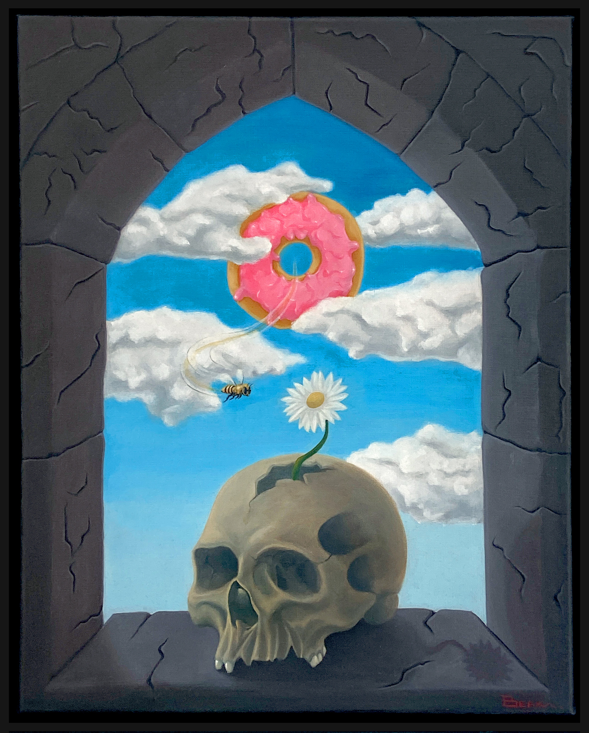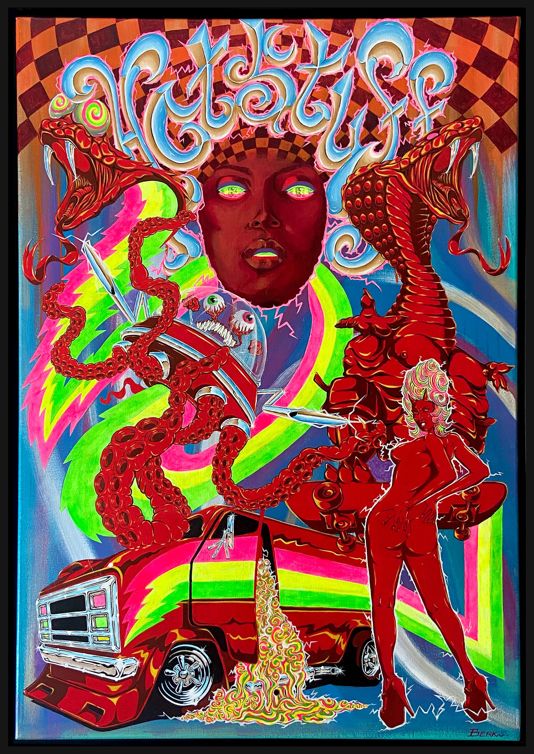For his artwork Guido employs a dynamic mix of acrylic paint, oil paint, charcoal and spray-paint to craft visually arresting paintings in a vibrant and graphic style. He explores the depts of abstract imagination, by navigating the realms of underground and custom culture to produce artwork that entices the viewer to explore further. Guido’s creative vision is deeply influenced and inspired by the worlds of comic books, skateboarding, punk rock, hip-hop, arthouse film, vintage horror, mythology and symbolism. His work is best described as “Low Brow” or “Pop Surrealism”
